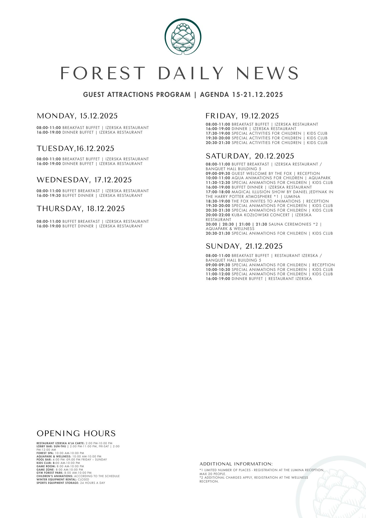 Pro poskytování služeb na nejvyšší úrovni využívá Služba soubory cookies uložené v paměti prohlížeče. Podrobné informace o účelu jejich používání, včetně zpracování údajů o aktivitě uživatele a personalizace reklam, a možnost změny nastavení souborů cookies, naleznete v Zásady ochrany osobních údajů. Kliknutím na 'PŘIJMOUT VŠE' souhlasíte s používáním technologií, jako jsou cookies, a s zpracováním vašich osobních údajů sbíraných na internetu FOREST PARK OPERATOR SPÓŁKA Z OGRANICZONĄ ODPOWIEDZIALNOŚCIĄ, ul. Widok 8, 00-023, Warszawa, jako jsou IP adresy a identifikátory souborů cookie, pro analytické a marketingové účely (včetně automatizovaného cílení reklam, měření jejich účinnosti a zpracování údajů uživatele pro analytické účely). Změny nastavení souborů cookies a podrobné preference souhlasů můžete provést v .