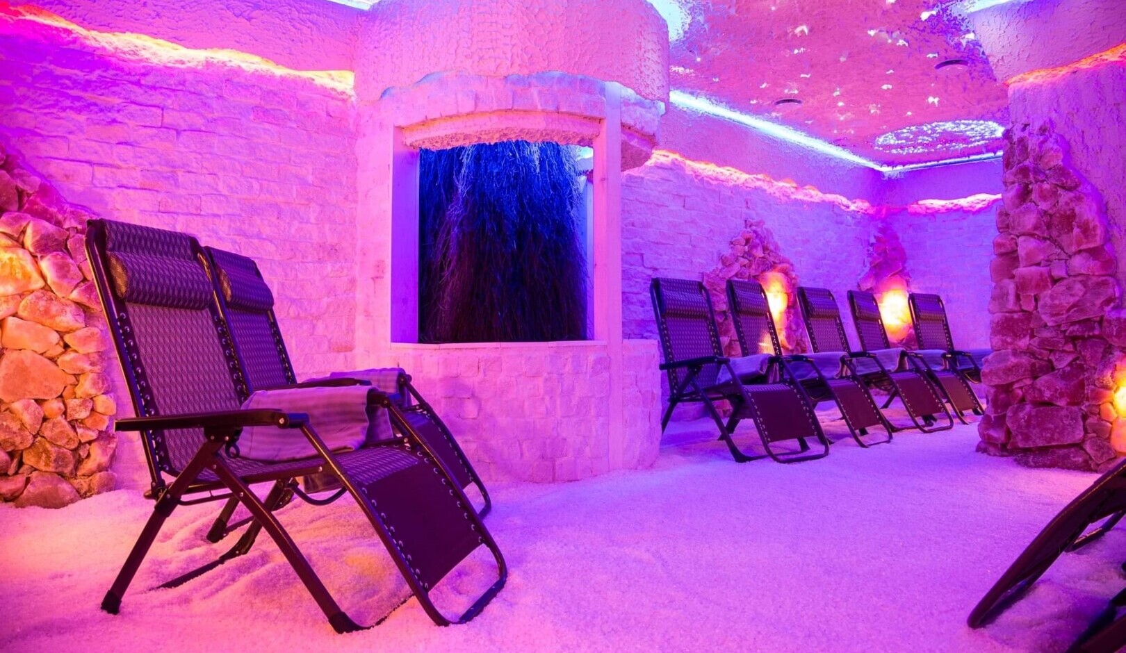 Izerskie Centrum Soli located in a historic building of a former cinema offers rest, relaxation, and a large dose of health. In the charming salt cave with brine graduation towers, you will find peace, silence, and a whole range of colors used in color therapy and, most importantly, air saturated with salt, similar to that which prevails in the healing chambers of the salt mine in Wieliczka. The inhalation room, equipped with a professional Salina Vita salt generator, creates the atmosphere found by the sea during a storm or tempest. The device produces salt aerosol whose particles range from 1 to 5 micrometers, and its effects are medically confirmed.