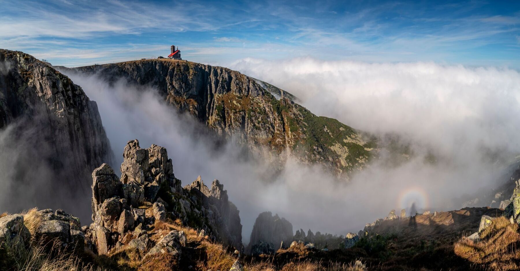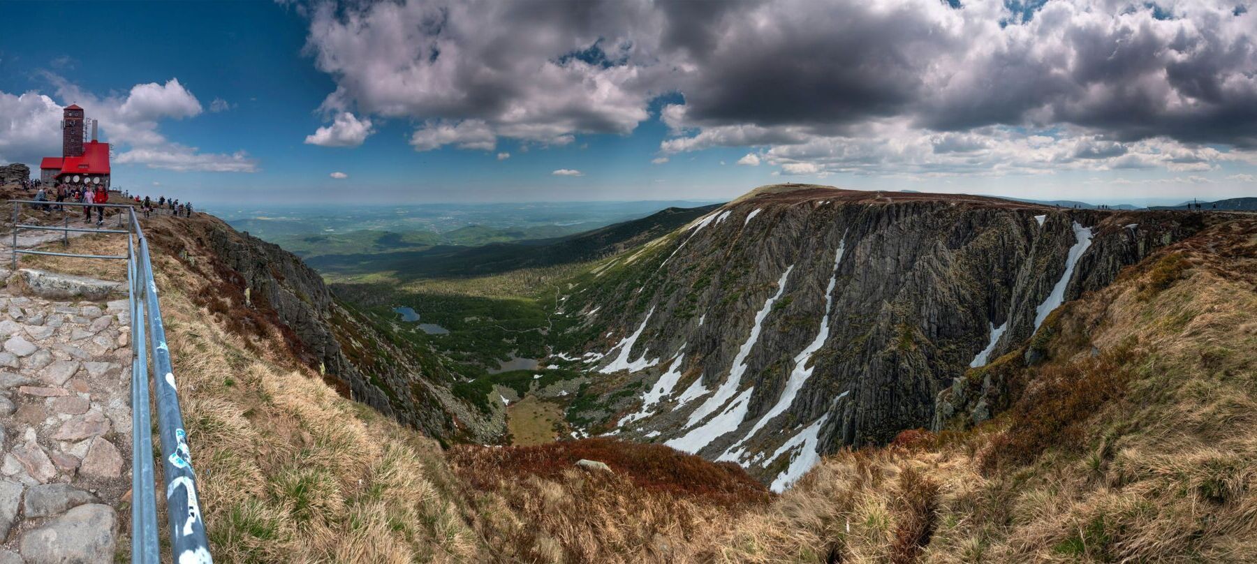 Śnieżne Kotły (Snowy Pits) is an excellent vantage point offering panoramic views of the Giant Mountains, the Jizera Mountains, the Kaczawskie Mountains, the Rudawy Janowickie Mountains, and the Jeleniogórska Valley. In good weather, you will see Ślęża in the Sudetic Foothills.